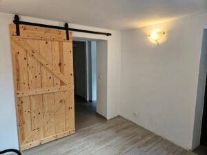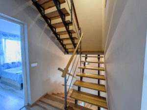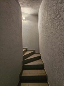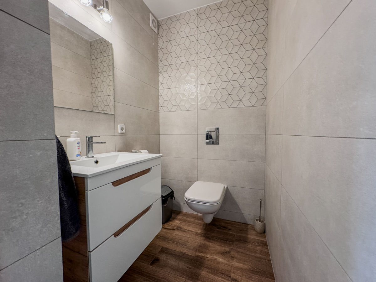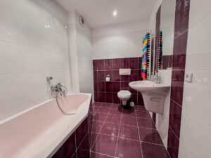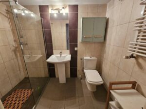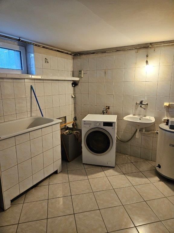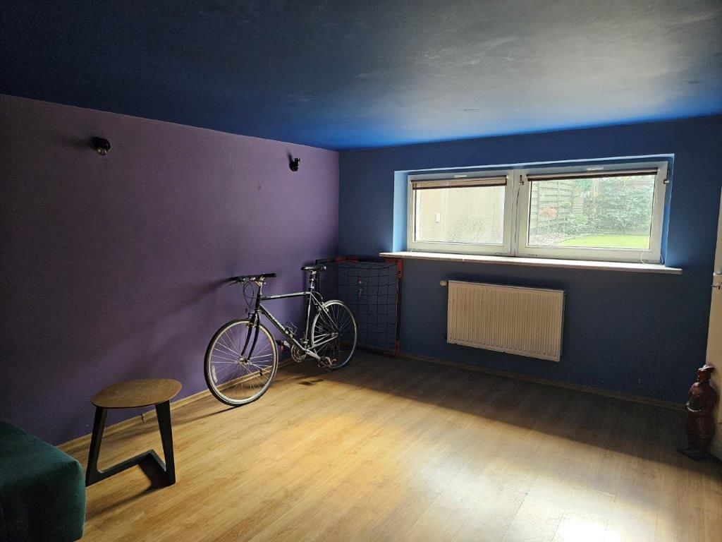 IV POZIOM – przyziemie z którego wydzielono mieszkanie z otwartą kuchnią , 2 pokojami i łazienką. Niezależne wejście od strony ulicy. Oprócz tego na dole znajduje się duża pralnia i pomieszczenie gospodarcze. Z uwagi na aranżację tego poziomu dom nie ma garażu, ale istnieje możliwość przywrócenia pierwotnej postaci.