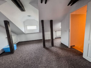 III POZIOM – ok. 50m2 ,poddasze użytkowe podzielone na dwa pomieszczenia , z oknami i częściowymi skosami ( wys. 90cm)