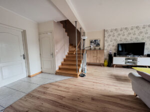 I POZIOM – hol 8m2, WC, salon 30m2 z wyjściem na ogród (80m2 ) przez taras 9 m2 ,kuchnia 12m2 umeblowana i wyposażona