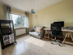 II POZIOM – 3 sypialnie: 18m2, 16m2,11m2, łazienka z wanną. Największa sypialnia ma dużą szafę w zabudowie i oddzielną łazienkę z prysznicem. Średnia z balkonem od strony ogrodu.